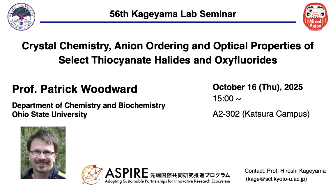CNRS Chemistry Lecture Tour, 2025/1/19-1/21, Prof. Kageyama