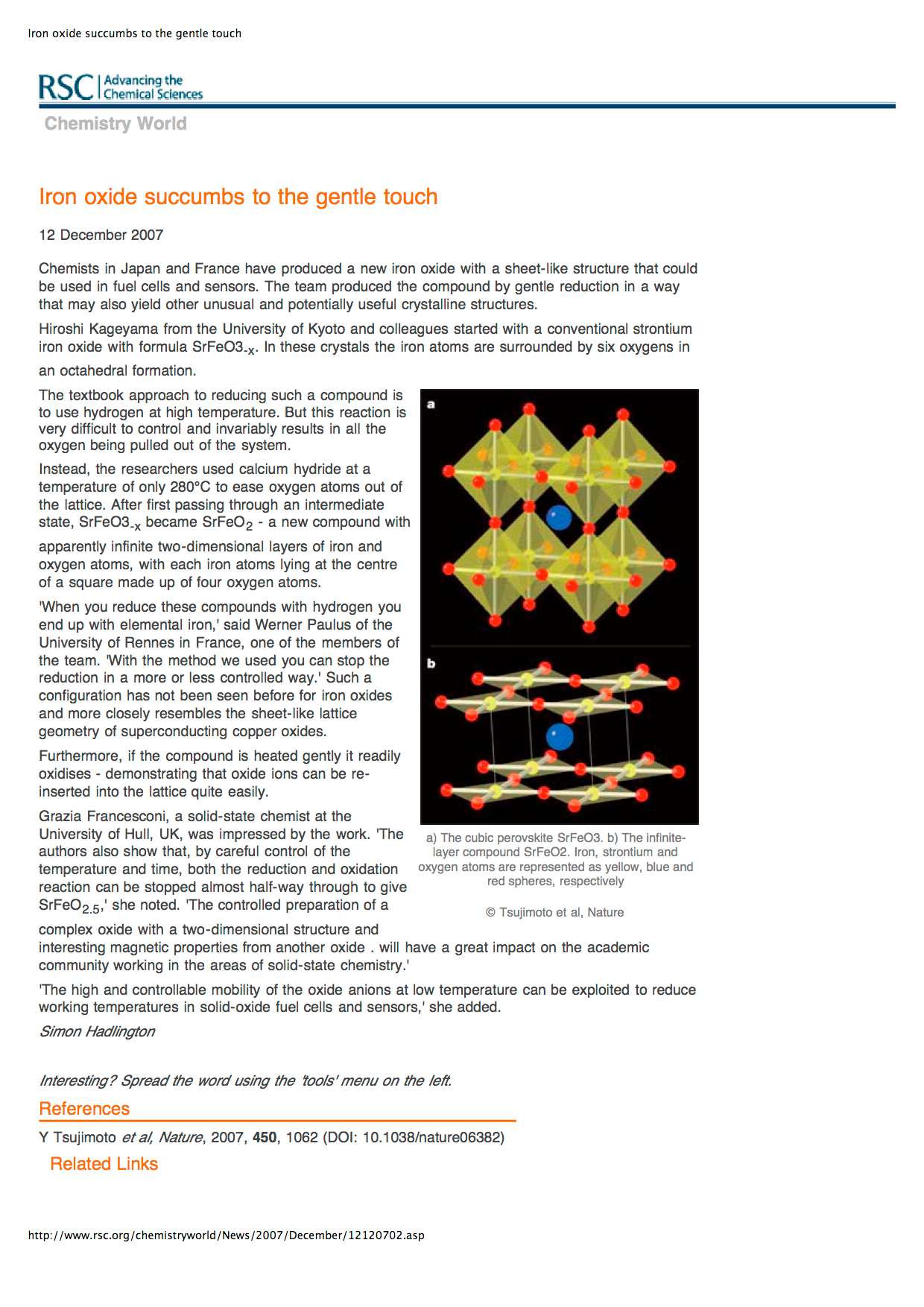 - Chemistry World (2007年12月12日、WEB)