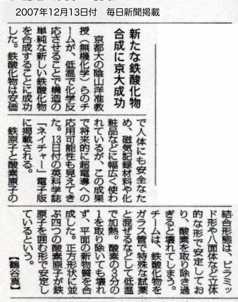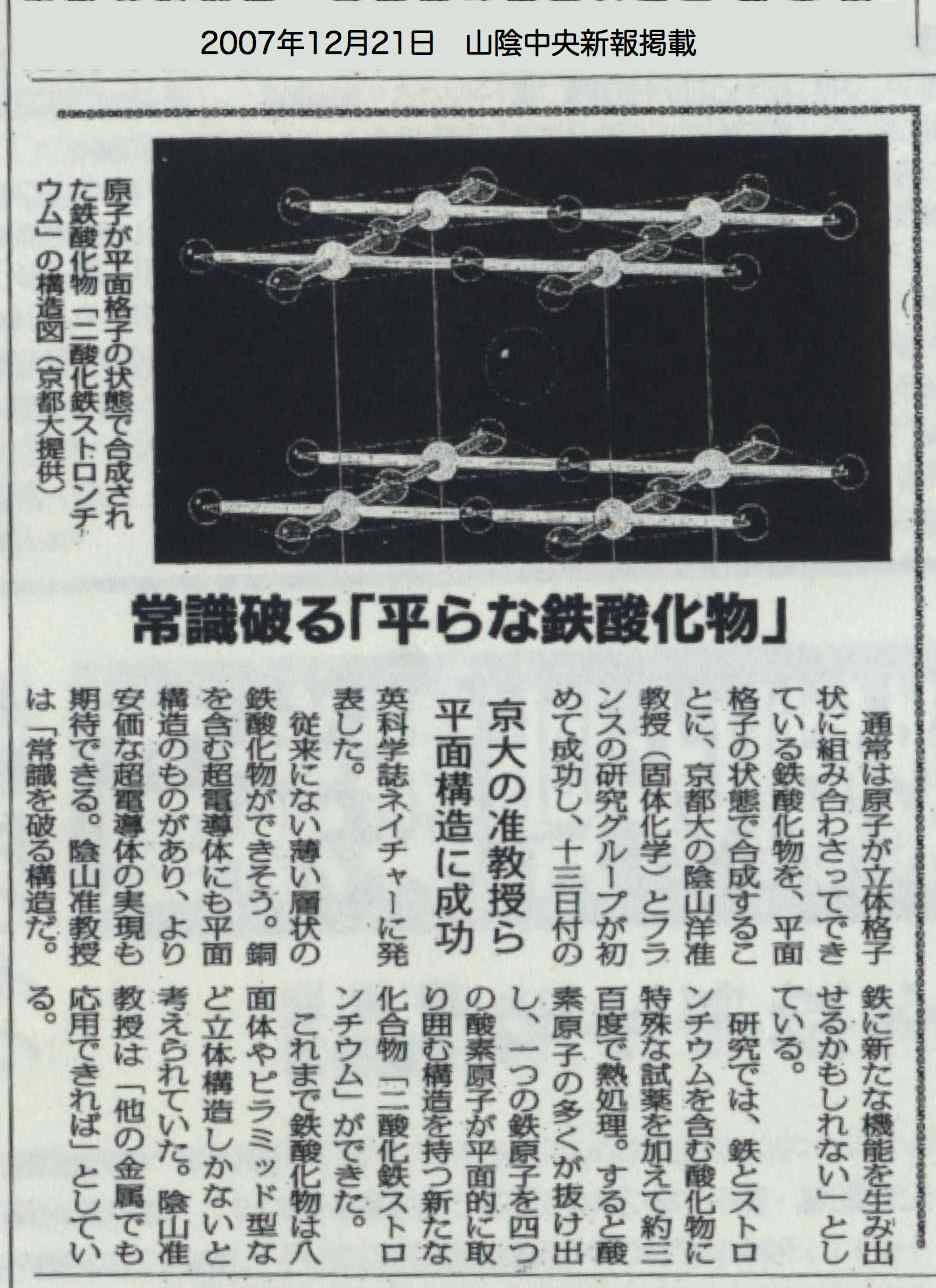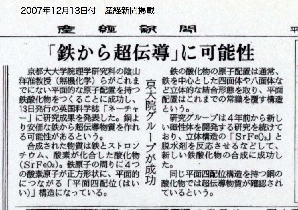 画期的,平面状の鉄酸化物 超電導など応用期待 京大准教授らグループ合成成功