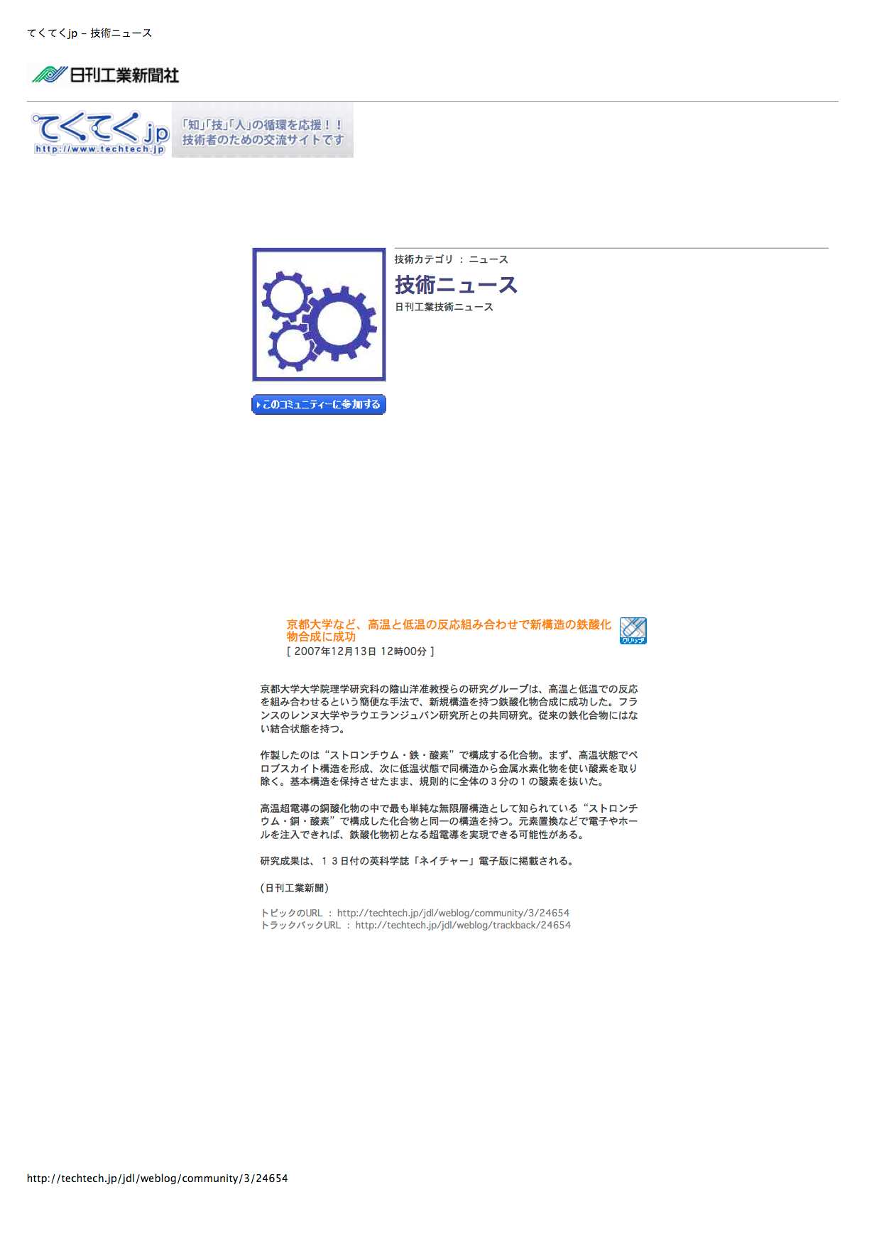 - 日刊工業新聞 (2007年12月13日,WEB)
