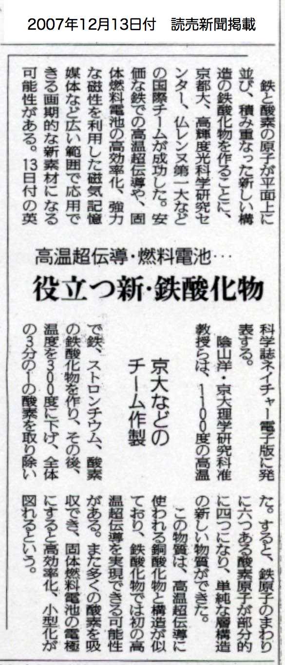 - 読賣新聞 (2007年12月13日、2面)