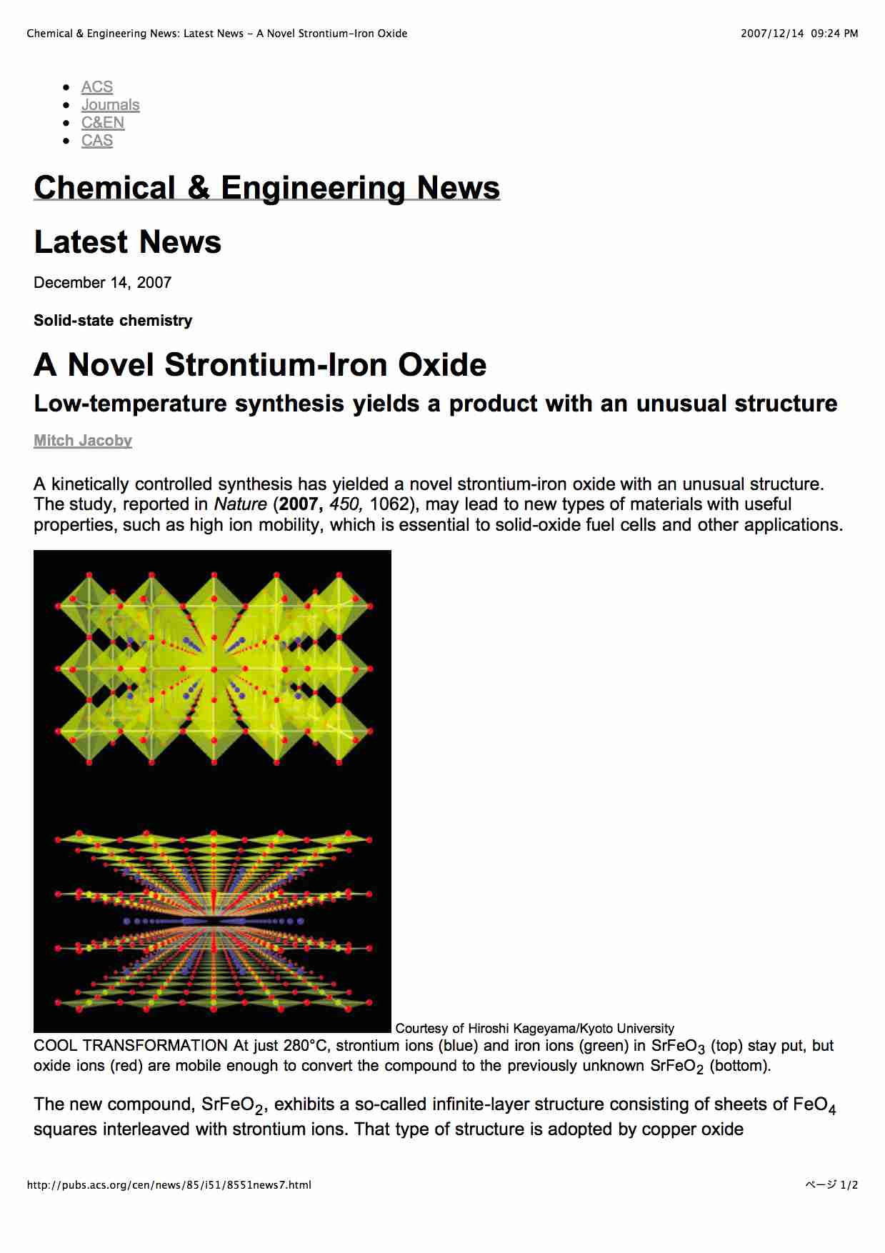 - Chemical & Engineering News (2007年12月14日)