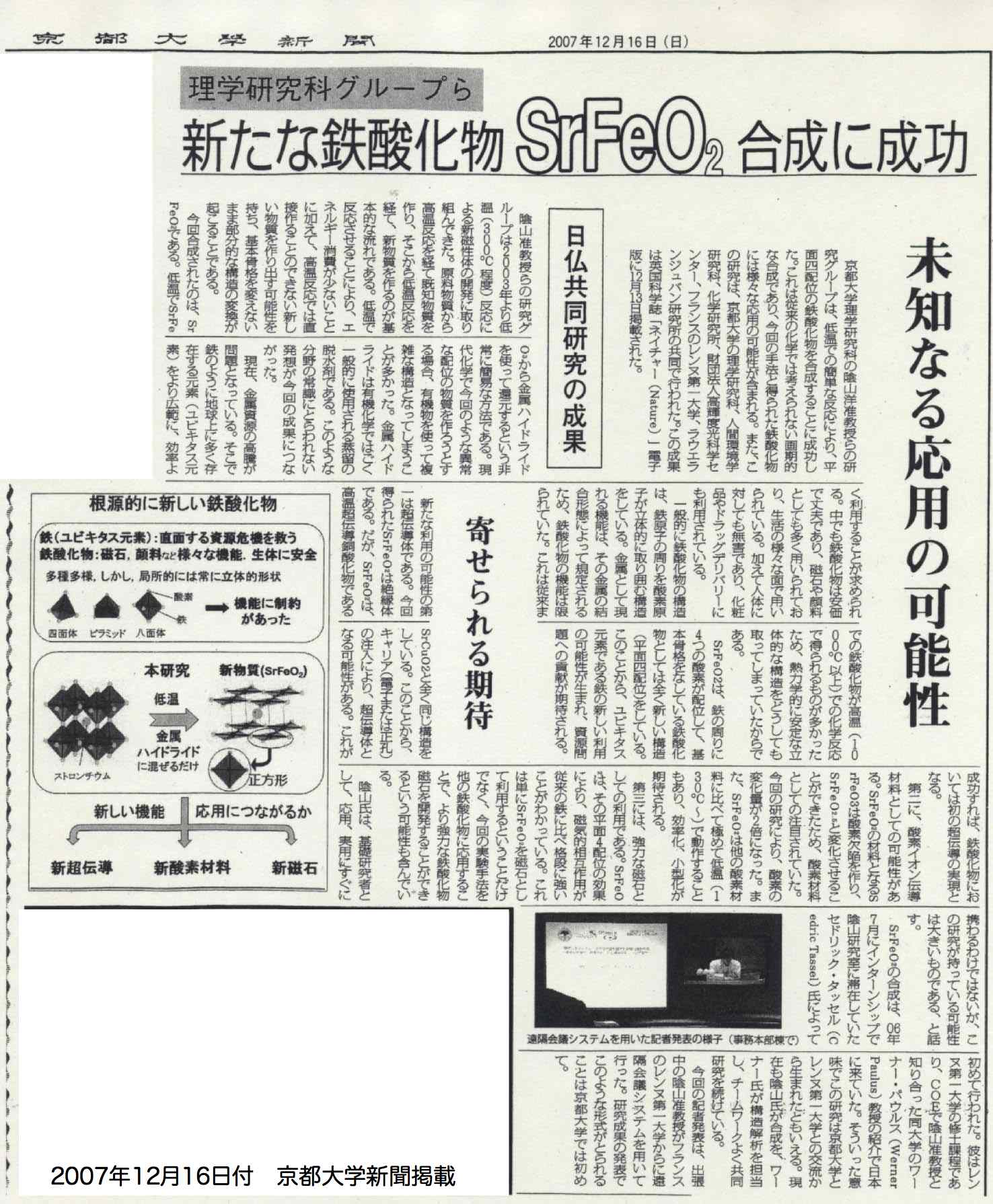 - 京都大学新聞 (2007年12月16日、3面)