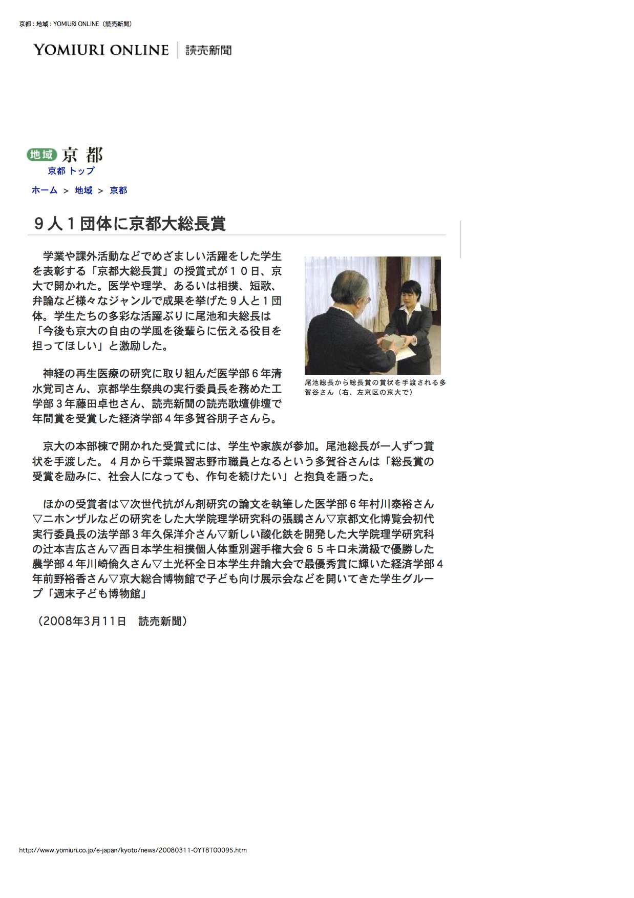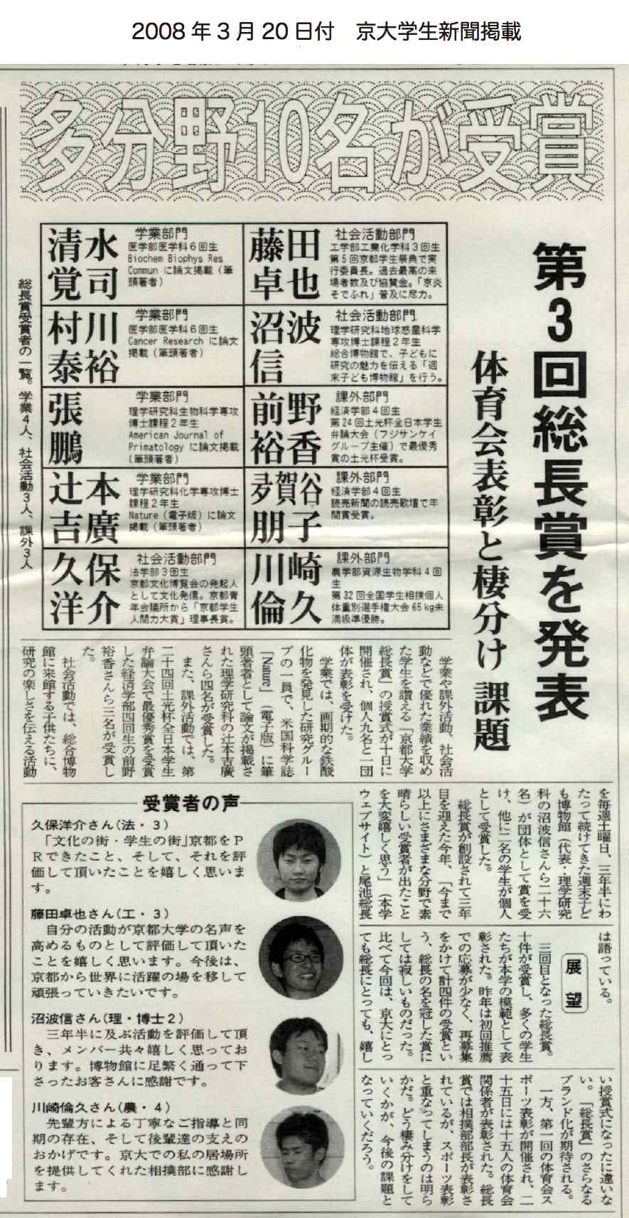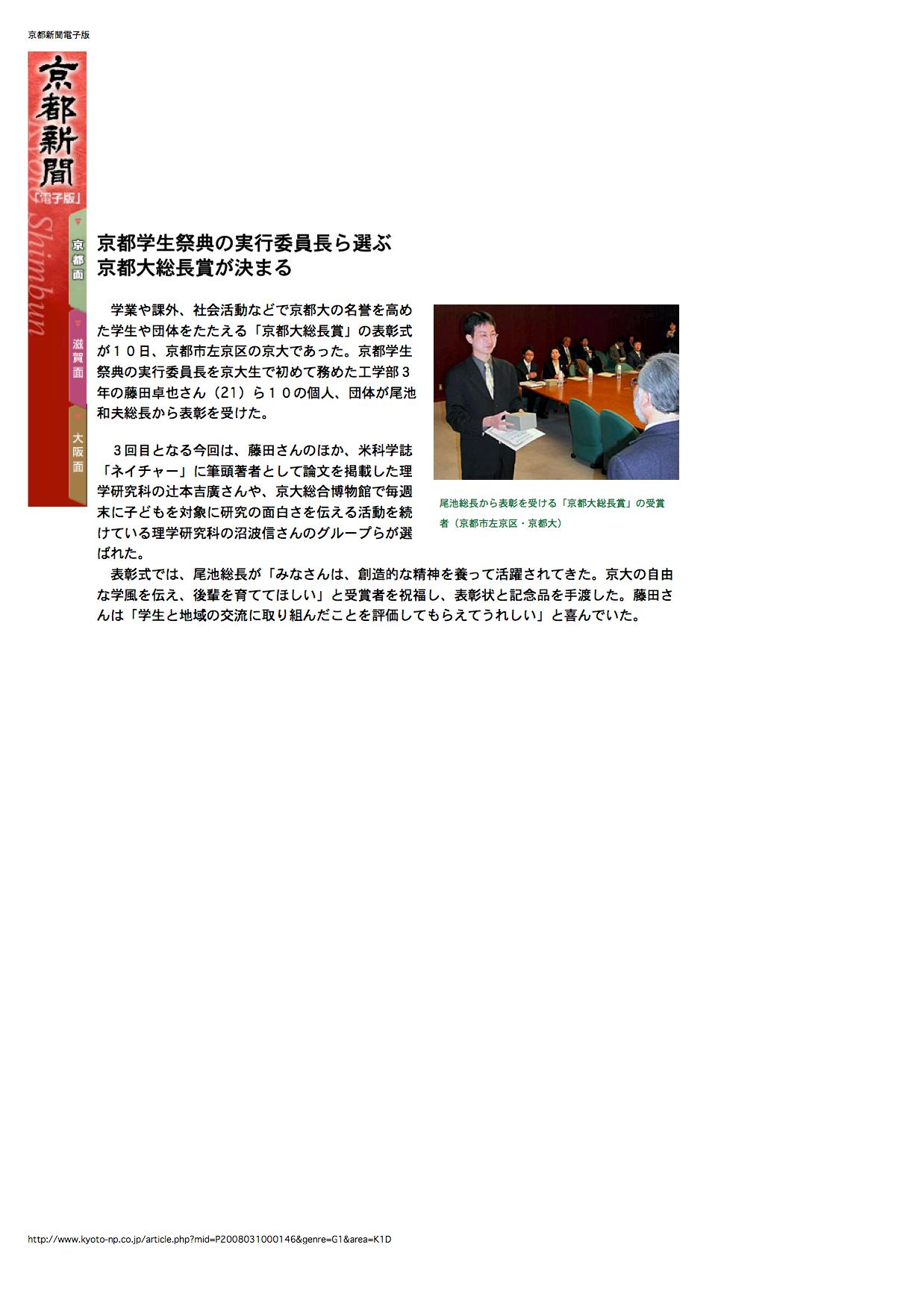 - 京都学生新聞 (2008年3月20日)