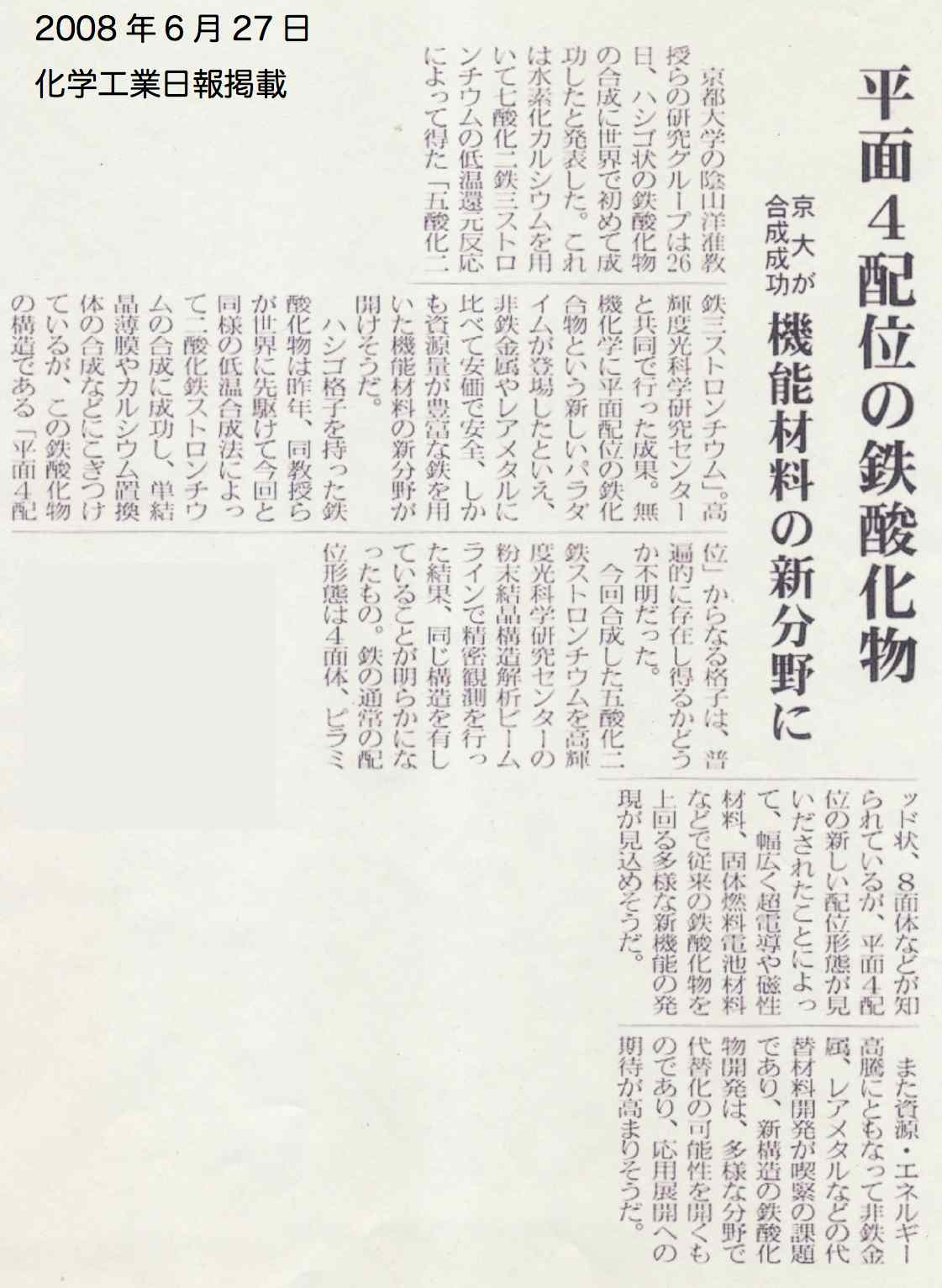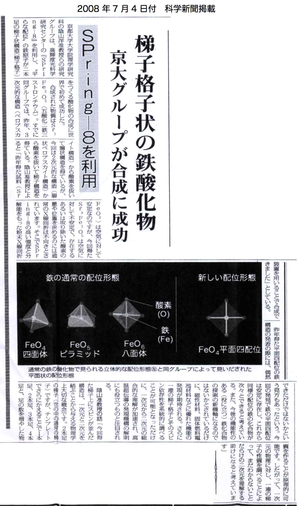 - 科学新聞 (2008年7月4日、1面)