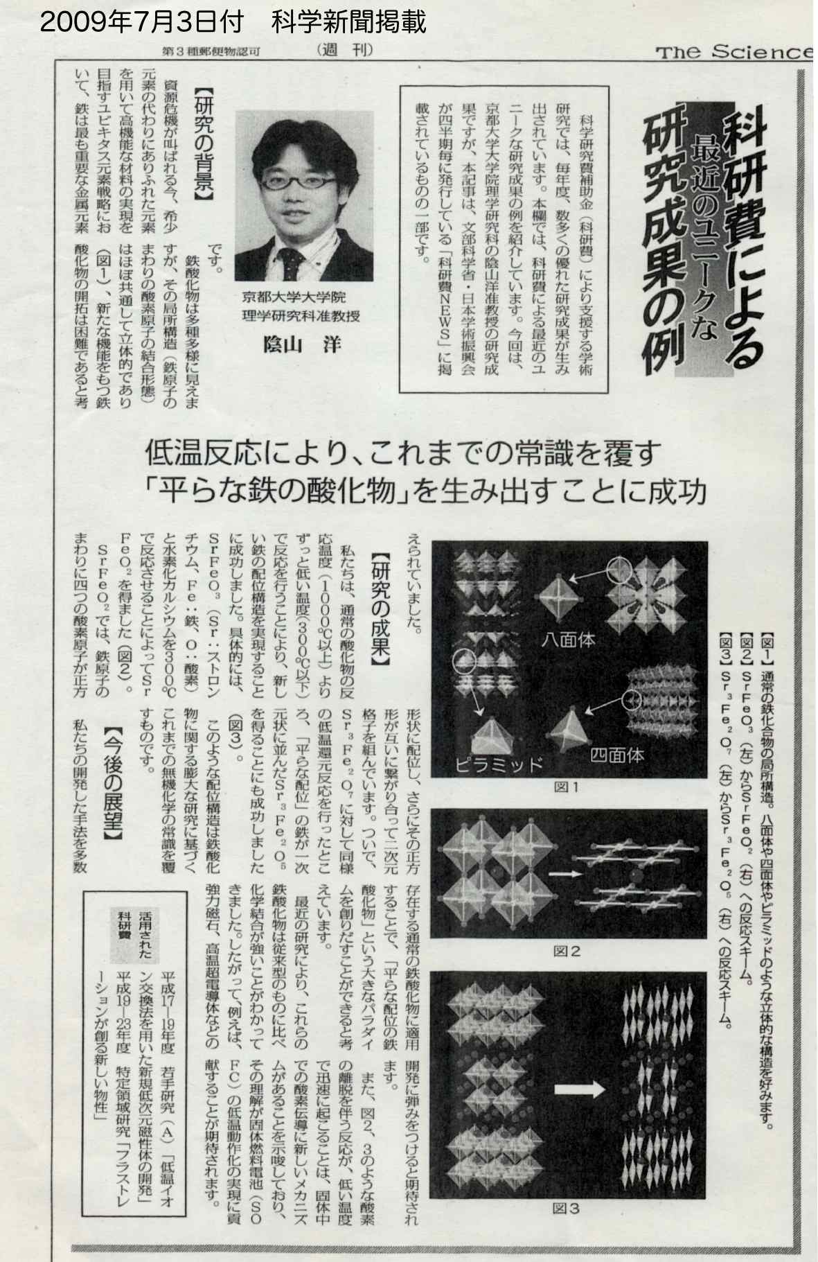 - 科学新聞 (2009年7月3日、6面)
