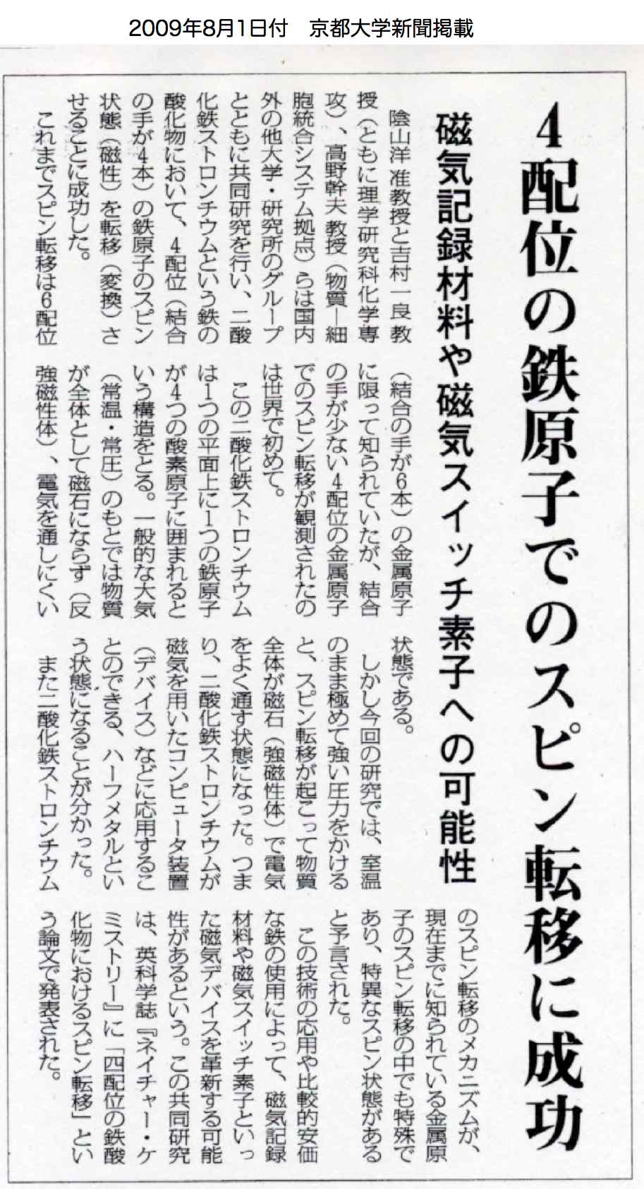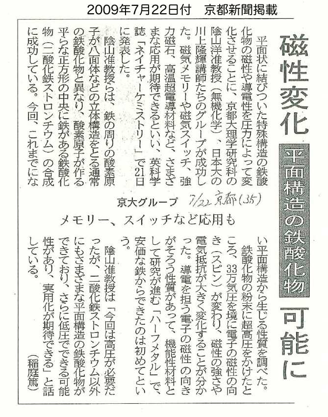 - 京都大学新聞 (2009年8月1日、WEB)