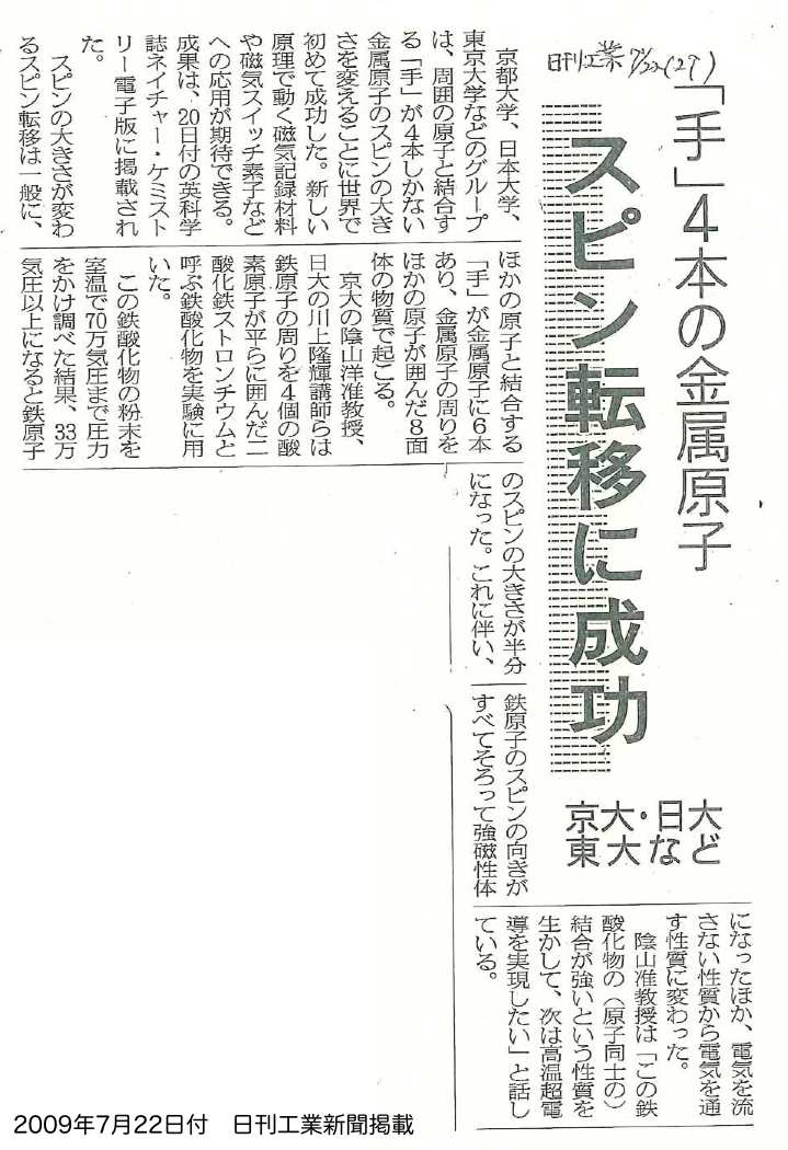 - 日刊工業新聞 (2009年7月22日、WEB)
