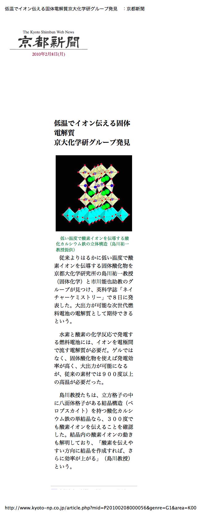 - 京都新聞 (2010年2月8日,WEB)