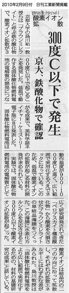 - 日刊工業新聞 (2010年2月9日,26面)