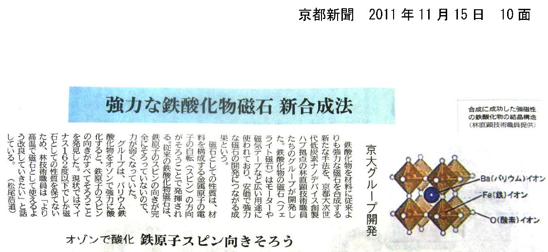 強力な鉄酸化物磁石 新合成法 オゾンで酸化 鉄原子スピン向きそろう 京大グループ開発