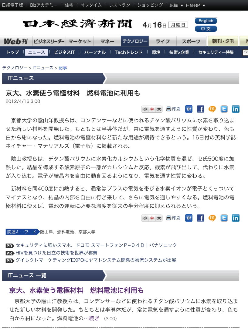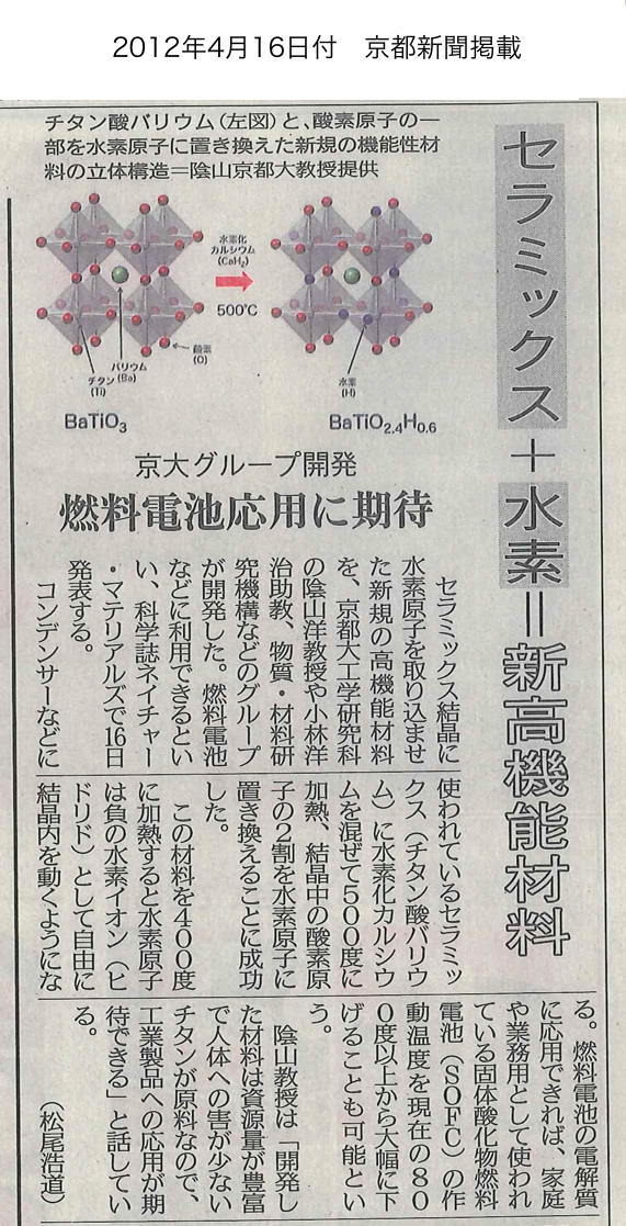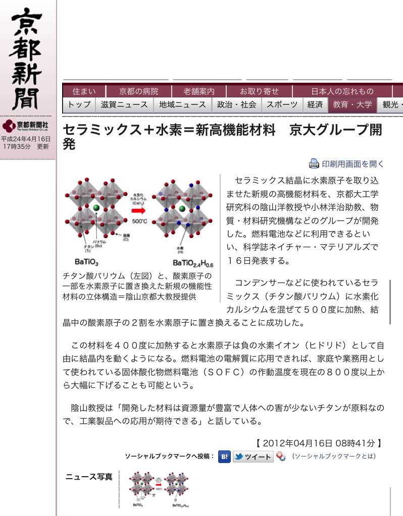 セラミックス+水素=新高機能材料 京大グループ開発 燃料電池応用に期待