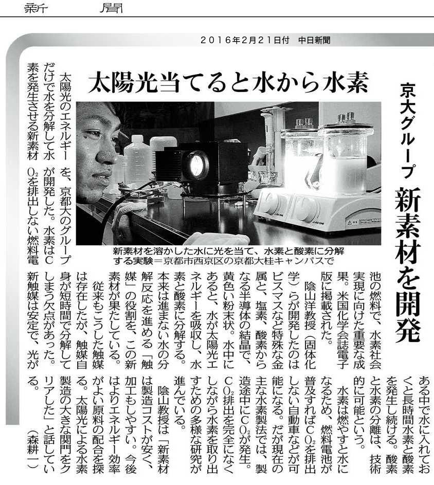 太陽光当てると水から水素 京大グループ 新素材を開発