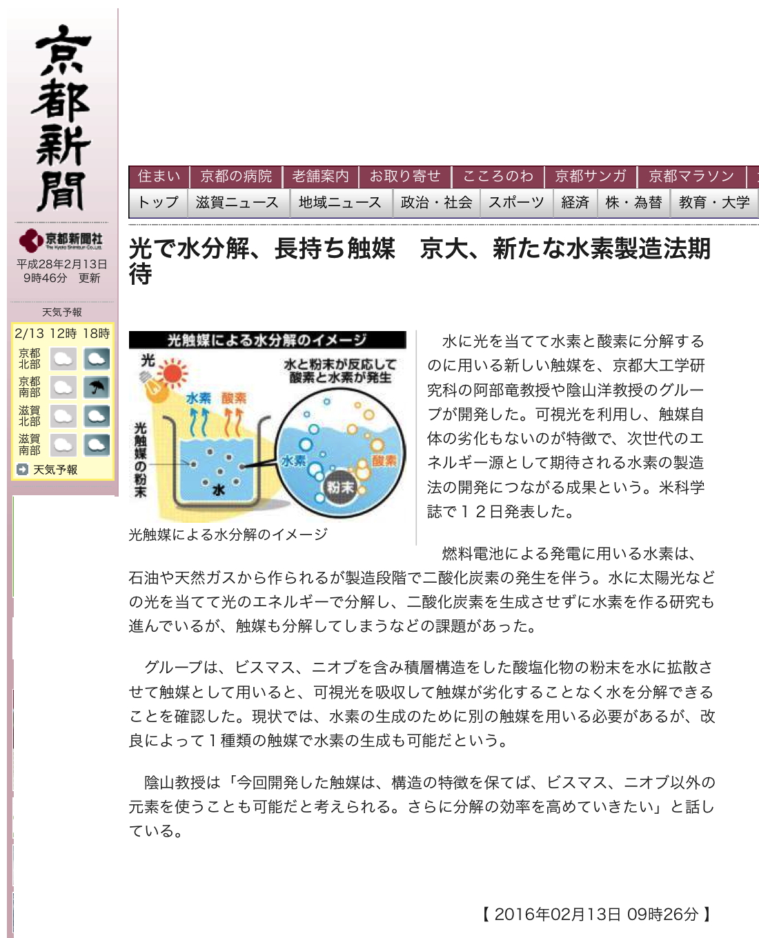 - 京都新聞(2016年2月13日, WEB)