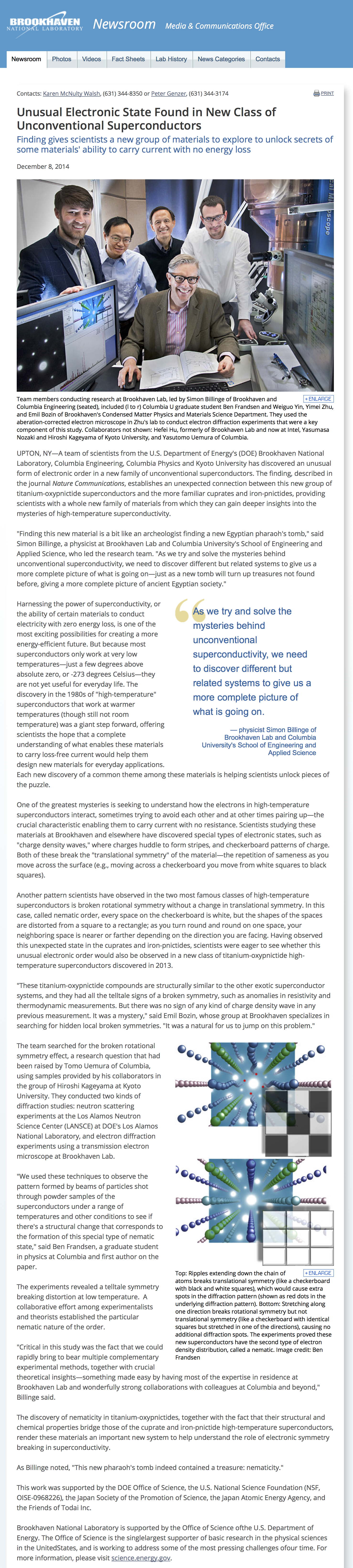 - Brookhaven National Laboratory(2014年12月8日)