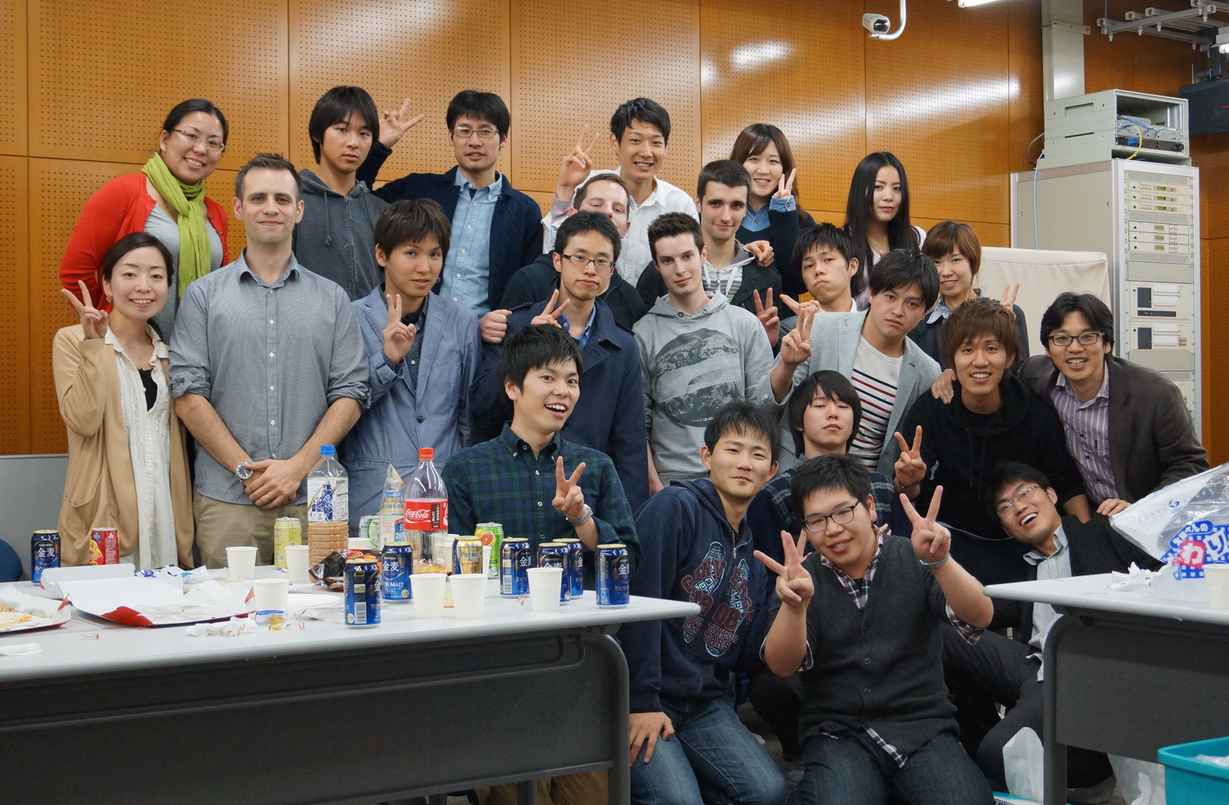 Birthday party for April 4月: 誕生会 | May: Neutron experiment at ANSTO (Guillaume , Cedric and Kageyama) 5月: オーストラリアで中性子実験.ギョーム(D2)、セドリック、陰山 |